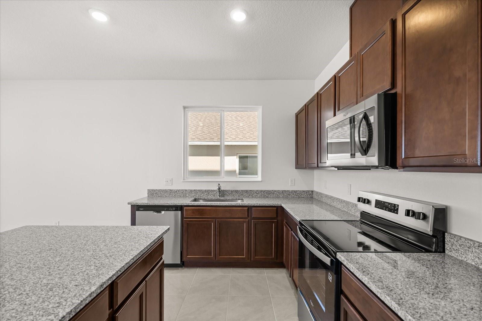 $1,463This beautiful home will be the perfect fit with 9-ft. ceilings and upgraded tile flooring in the living and wet areas. On the first floor, discover a convenient powder bath, a spacious great room, and an open kitchen. The kitchen showcases 36-in. upper cabinets in Pecan, granite countertops, an island, a chrome Moen® faucet, a stainless-steel Kohler® sink, and stainless-steel Whirlpool® appliances. Moving upstairs, there are three secondary bedrooms with spacious closets, a full bath, a dedicated laundry room, and a primary suite. The primary features a walk-in closet and a connecting bath with a linen closet, a dual-sink vanity, and a walk-in shower with tile surround. This home also offers a covered patio perfect for enjoying the outdoors.