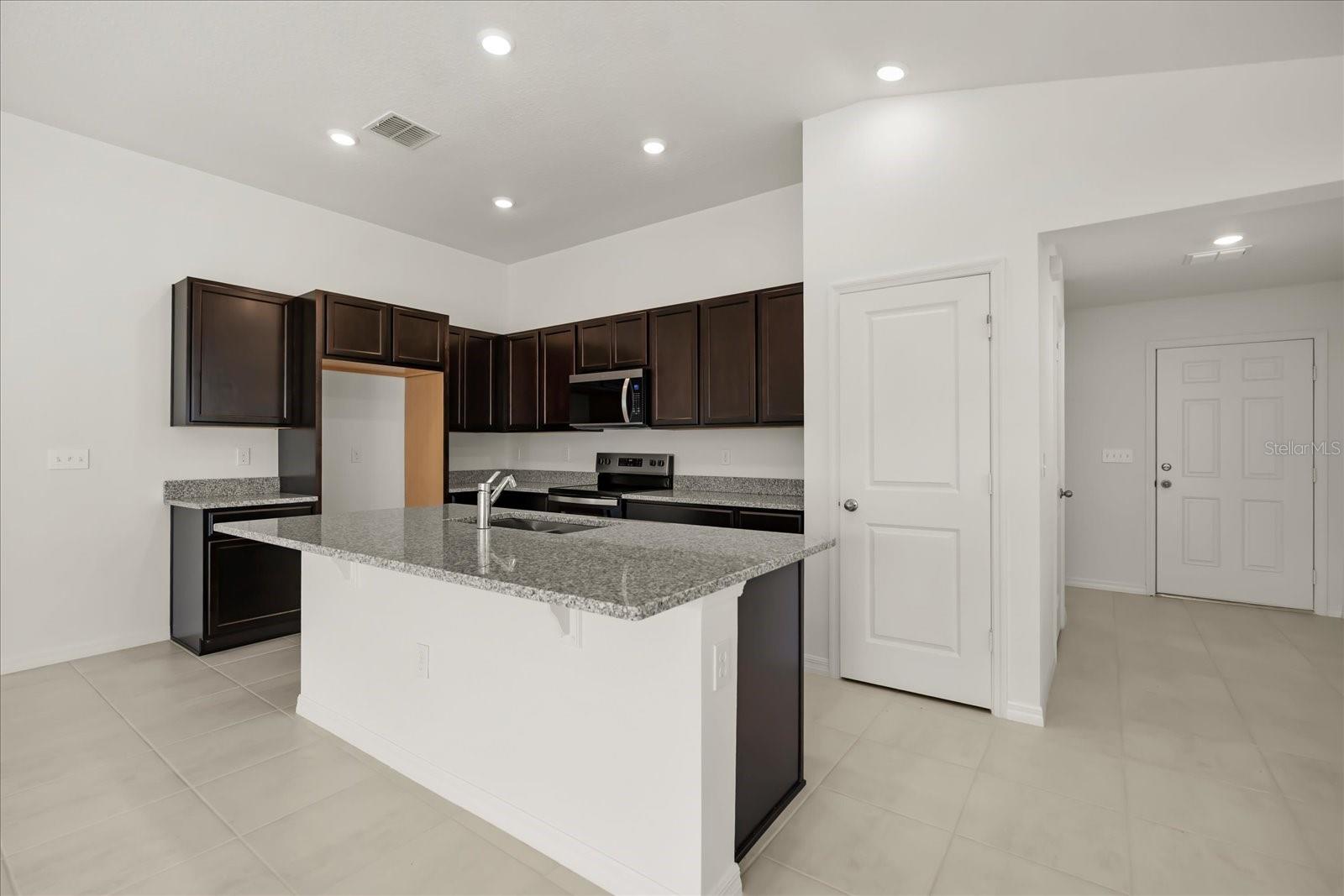 $1,414This beautifully appointed single-story home blends comfort and style, starting with a welcoming covered front porch that adds classic charm. Inside, you'll find a thoughtfully designed open layout with tile flooring throughout the main living areas and impressive volume ceilings that enhance the sense of space. The kitchen is both stylish and functional, featuring a central island, pantry, granite countertops, Whirlpool® stainless steel appliances, and 36-inch upper cabinetry. The primary suite offers a peaceful retreat with a generous walk-in closet and a well-equipped bath that includes a dual-sink vanity, granite surfaces, linen storage, and a tiled walk-in shower. Enjoy effortless indoor-outdoor living with a covered back patio, perfect for hosting or unwinding.